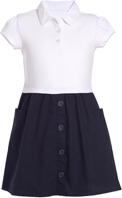- School uniform short sleeve polo dress with poplin skirt